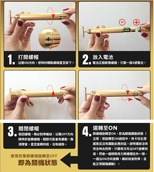 【Beauty-新24K純金離子美人棒】電波流長相同純金離子成分的美人棒是近期超夯的美顏器,每分鐘高達8000次微震動,按摩肌膚好輕鬆,全身都能使用!每入只要225元起,即可享有【Beauty】新24K純金離子美人棒〈一入/二入/四入/六入/八入〉