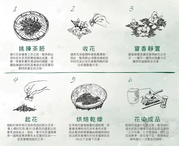 春天的柚子花、夏天的玫瑰、秋天的茉莉、冬天的梅花,四季裡,台灣土地上都有不同的香花綻放。如何能讓在城市裡的您也能隨著寶島芬芳四季?七三茶堂挑揀質地細緻、產自阿里山的高山綠茶作為基底,收集寶島的四季花香,學習香片窨製古法,製作出優質的寶島香片。「窨」讀音一ㄣˋ有深藏之意,運用在香片製作上,念ㄒㄩㄣ。在七三花染系列產品名稱上,我們念一ㄣˋ,我們期盼透過品嚐七三花染,您能和山林裡綻放的四季花香不期而遇的這份感動"深藏'心裡。七三花染以自家茶園所生產的阿里山高山綠茶與宜蘭綠茶作為茶味主調,含有健康豐富的兒茶素(茶多酚),口感醇和鮮爽,適合在飯後、午後與夏季冷泡飲用。