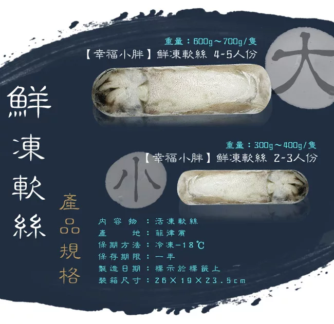 【幸福小胖】鮮凍軟絲 2-3人份1隻